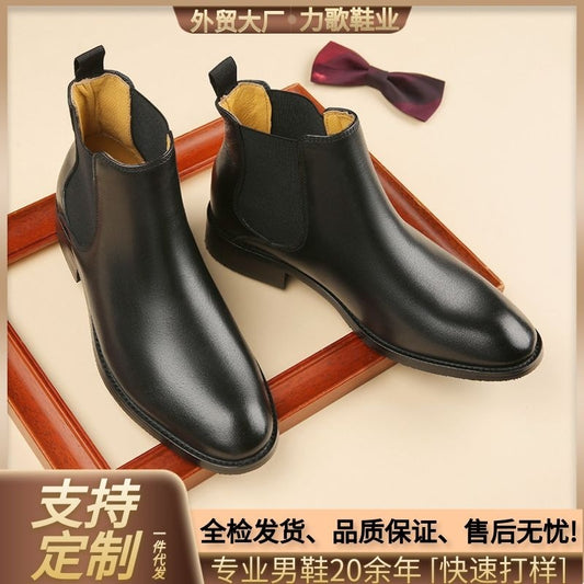 2024 Fall Winter New Top Grain Leather Handmade Shoes Men's Genuine Leather British Chelsea Boots High-top Slip-on HK105