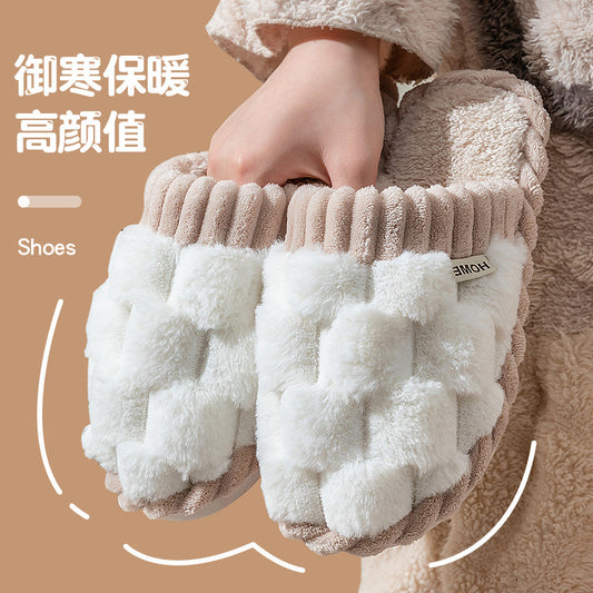 2023 Fall Winter New Women's Indoor Household Couple Anti-slip Warm Fleece Fur Slippers for Men HK22